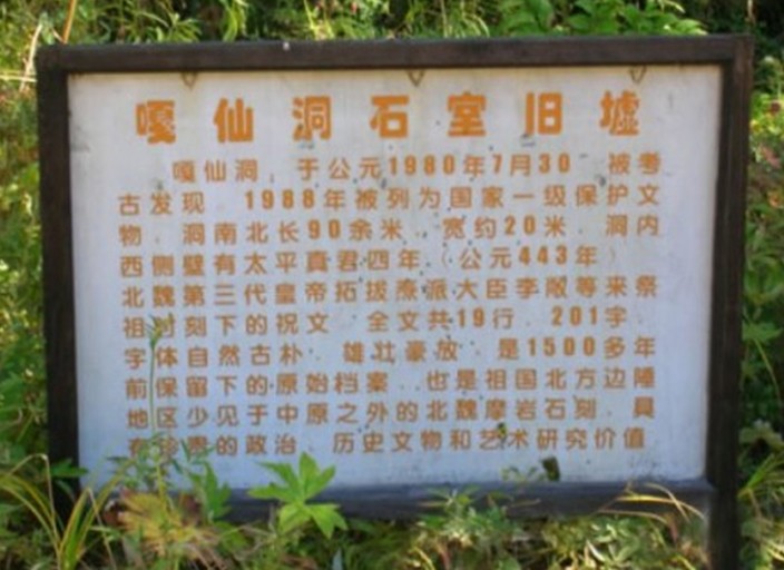 嘎仙洞森林公園位于內(nèi)蒙古呼倫貝爾市鄂倫春自治旗境內(nèi)。聞名海內(nèi)外的國(guó)家重點(diǎn)文物保護(hù)單位——拓跋鮮卑舊墟石室嘎仙洞,是一個(gè)天然石洞,規(guī)模宏大,地處高阜,背風(fēng)向陽(yáng),依山傍水。洞南北長(zhǎng)92米,東西寬27.8米,高20多米。洞內(nèi)石壁祝文是北魏皇帝拓跋燾于太平真君四年(公元443年)派李敞來(lái)祭祖時(shí)所刻,距今已1558年。