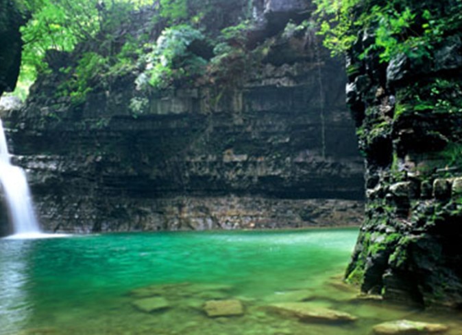 虎跳崖景區(qū)以秀美的山水吸引八方游客?;⑻缕俨己盟埔蛔渲槠溜L(fēng)掛在山腰,俏儷怡人,濺起的水珠晶瑩剔透,風(fēng)又把它吹的如煙如霧,清澈的溪水宛如銀鏈纏繞在群山腳下,水中游蕩翻轉(zhuǎn)的細(xì)鱗魚在陽(yáng)光的照耀下不時(shí)映出道道銀色的光芒,如詩(shī)如畫。順流而下,便可進(jìn)行20公里流程的三道沖河漂流—龍鳳山水庫(kù)的源頭漂流,沿岸風(fēng)光秀麗,水流清澈透底。時(shí)而激流湍急,驚險(xiǎn)刺激,時(shí)而穩(wěn)流如靜,平緩蕩漾,令人留漣忘返。