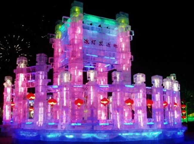 現(xiàn)代獨(dú)特的冰質(zhì)造型藝術(shù)與冰景造園藝術(shù),是冰城人開(kāi)發(fā)利用冰雪資源最為突出的成就之一。它以松花江天然冰、自來(lái)水和各種電燈為材料,用砌筑、堆壘、雕刻、噴澆、冷凍和鑲嵌等方法,根據(jù)特定的主題需要和總體布局安排,在不同的園林空間加工出有關(guān)的冰景,冰建筑、冰雕塑、冰 瀑布、冰花壇、冰滑梯、冰書(shū)法、冰盆景、冰廣告、冰凍花、冰罩燈,組成若高低錯(cuò)落、疏密有致的不同景區(qū),形成步步有景、步移景易的冰雪園林,同時(shí)配置各種燈光,增加動(dòng)的成份,輔以音響效果,達(dá)到形、光、動(dòng)、聲的和諧統(tǒng)一。冰燈藝術(shù)是以冰為載體,以燈為靈魂,融繪畫(huà)、雕塑、建筑、園林、文學(xué)、音樂(lè)等多種藝術(shù)于一身,并可運(yùn)用光學(xué)、力學(xué)、聲學(xué)及電氣、機(jī)械等科學(xué)技術(shù)的新興的造型藝術(shù)。運(yùn)用這種藝術(shù)形式創(chuàng)造出的珠宮琳館、瓊榭瑤橋、銀雕玉塑、冰山雪嶺、冰凌冰瀑,白晝間千姿百態(tài),晶瑩剔透,入夜后流光溢彩,萬(wàn)紫千紅,象撲逆迷離的仙山瓊閣,似如夢(mèng)如幻的水晶宮闕,且年年出新意,歲歲景不同,被稱(chēng)為"永不重復(fù)的童話(huà)世界"。冰雕,即是冰燈中的一個(gè)品種,又是一種獨(dú)立的藝術(shù)形式。哈爾濱每屆冰雪節(jié)期間,都要分別組織職工、家庭、少年兒童和全國(guó)中學(xué)生以及國(guó)際性的冰雕比賽,比賽產(chǎn)生的數(shù)百件作品姿態(tài)各異,生動(dòng)傳神,巧奪天工。