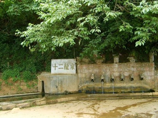 二龍泉又稱二龍眼,位于藥泉山風景區(qū)南端山腳下,泉水是從石橋上的一個石雕大龍頭的嘴中流出,在大龍頭的兩側(cè)還有兩個小龍頭,從三個龍頭中淌出的泉水構(gòu)成了一個微型瀑布。泉水甘甜爽口。據(jù)一位日本科學(xué)家檢測,它的水質(zhì)等八項指標均達到國際免檢標準,因此是稀有的偏硅酸礦泉水。它還有很高的醫(yī)療價值,對眼科疾病如白內(nèi)障、青光眼、近視眼、急性角膜炎等病癥都有療效,所以又叫洗眼泉。