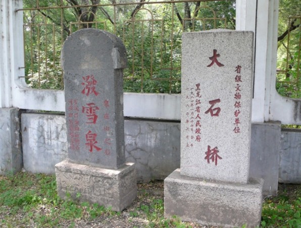 位于寧安市區(qū)西雞陵山下,橫跨大溝壑上。為清代通向遼、吉要道。此橋為黑龍江地區(qū)僅有的清代石拱橋。橋東有潑雪泉,泉水流入溝壑,經(jīng)大石橋,南注牡丹江。始建于后金天聰八年(1634年),原系板筑;后改石筑,為單曲拱大橋,全長25米,寬4.5米,高7.3米.橋面鋪石,兩側(cè)設(shè)石欄桿,上雕刻石桃,欄間嵌有刻成草葉紋和云卷紋飾的石板。建國后曾進行維修。