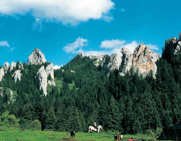 則岔石林位于海拔3250米的甘南州碌曲縣洮河南部,景區(qū)全長22公里,面積達(dá)2萬公頃,最高峰海拔4300米,最低處海拔2900米。該地系造山運(yùn)動(dòng)上升,并經(jīng)流水侵蝕、風(fēng)剝雨蝕而成的大面積硅灰?guī)r石林。妖峰屹立,千姿百態(tài),以“險(xiǎn)、峻、奇”著稱,主要景點(diǎn)有“青天一線”、“靈猿望月”、“唐僧師徒”、“駱駝峰”等,它們神形兼?zhèn)?,維妙維肖,每個(gè)景點(diǎn)又都滲透著藏族英雄格薩爾王的傳說故事。版權(quán)所有山東聊城聊之旅國際旅行社有限公司,轉(zhuǎn)載必究!據(jù)史載,歷史上唐蕃曾在此會(huì)盟。這里也是13世紀(jì)末葉蒙元?dú)埐客塑姇?huì)戰(zhàn)的古戰(zhàn)場之一。