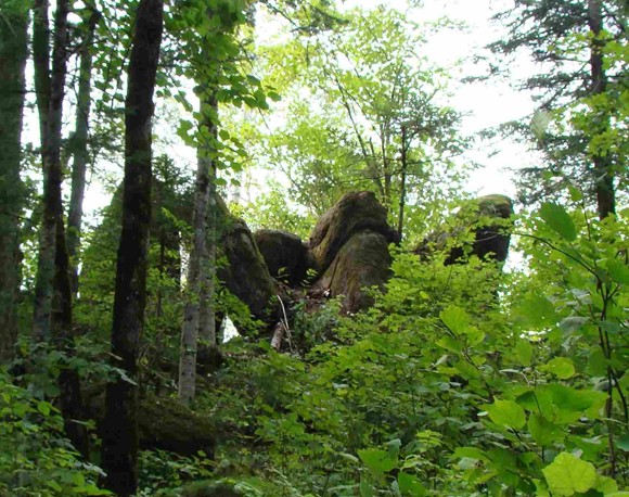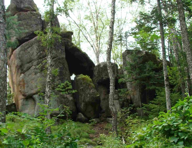 位于距市區(qū)7公里處。在一片密林中,有一簇平地拔地而起,以一塊塊花崗巖巨石砌成的石峰,高大雄偉,其形似柱,稱謂石林。石林由六座石峰組成,南二北四。北面四座一字梯形排列,一高近丈,二高近二丈,三高平二丈,四高一丈半。二峰端長有蒼松一株,似示最高。各峰成形惟妙,二三座石峰間相距極狹,僅尺許,縫如刀切,稱“一線天”。在第四座石峰南5米處,還有兩座石峰,相距不足1米,微低。遠(yuǎn)望,形如雄師臥地,前身支起而后身匍匐,似忠誠的護(hù)林衛(wèi)士。第二叢樹林,在第一叢以東偏南,相距約百米。由三座石峰構(gòu)成,北二南一。北西兩座甚是匹配,高九仞余,其中一座有三個(gè)峰端,有護(hù)林人“家業(yè)興旺”之寓。沿三峰石南側(cè)攀緣而上,至高6米處,鉆過兩塊大石堆成的石門,便到了石峰東側(cè)的平臺(tái),臺(tái)成弧狀,可納十余人。臺(tái)下是陡峭絕壁,其險(xiǎn)令人目眩。臺(tái)之對面,有一塊呈圓鼓狀、低于平臺(tái)1米之大石,可容四人并坐,版權(quán)所有山東聊城聊之旅國際旅行社有限公司,轉(zhuǎn)載必究!其底部與三峰石相連,有狹道與平臺(tái)相通。登石眺望,可觀得西南方向約20米處的丈余高之石峰,似一擎天巨柱……石林,仿佛小興安嶺建設(shè)者之雄資,在廣袤密林中,手捧奇花異草,伴著山間小溪流水淙淙,迎候著遠(yuǎn)方的客人。