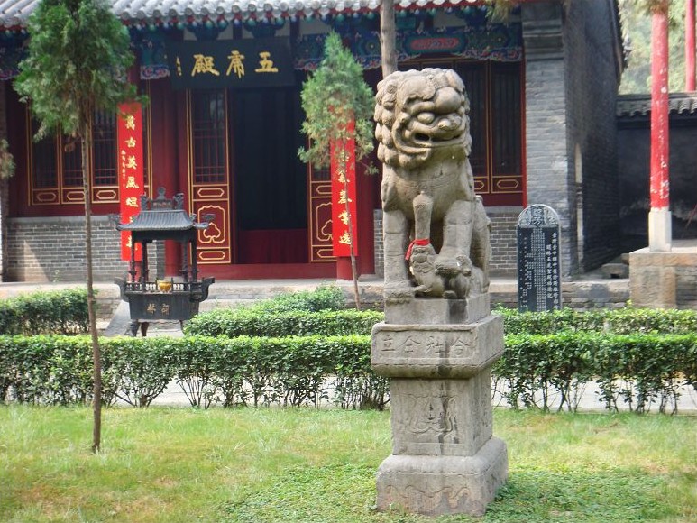 五開間,廡殿式,門上懸掛著"光昭日月"匾額,是清光緒帝御題。殿中塑關(guān)羽怒視東吳像,左側(cè)站著手棒大印的關(guān)平、右側(cè)站著手持大刀的周倉。二殿左右各建有一座硬山式的陪殿,左為張候殿,右為五虎殿。三殿硬山式,面闊五間,規(guī)模較小,內(nèi)塑關(guān)羽夜讀春秋像、關(guān)羽出行圖和睡像,版權(quán)所有聊城聊之旅國際旅行社有限公司,轉(zhuǎn)載必究!故又稱寢殿。