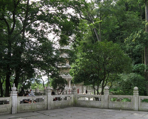 大殿后有一高臺(tái),前立二碑,乃朱德、董必武游黔靈山詩(shī)碑,碑后石壁嵌有多塊鐫刻,撰者為乾隆初年云貴總督吳達(dá)菩、貴門州巡撫劉藻、赤松和尚等。弘福寺不僅殿樓林立,還間有“風(fēng)尺亭”畫(huà)廊、“月明池”、“生生泉”“望城臺(tái)”等。寺后毗盧峰下有塔林,為弘福寺歷代祖師及僧人、居士之靈骨安藏處,有名可考者計(jì)有赤松、瞿脈、參之、惺慧、光燦、弗云、湛然、柏青、心月、智明、慈云、覺(jué)崇。