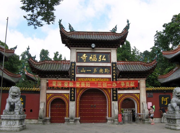 弘福寺位于貴陽(yáng)市黔靈山群峰中心,距城約1。5公里,是十方叢林,為貴州首剎,向有“黔南第一山”之稱。弘福寺于1672年(清康熙11年)由赤松和尚開(kāi)創(chuàng),“弘福”二字乃“弘佛大愿,救人救世;福我眾生,善始善終之意。赤松是為本寺開(kāi)山始祖,佛法為臨濟(jì)一系之正宗,乃禪門五宗之一。