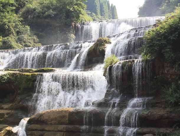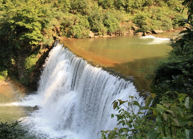 景如其名,此時游人仿佛置身于一個一塵不染的世外桃源境地。河水清澈見底,河床怪石林立。游人依修文桃源神舟旅游開發(fā)公司新建的觀光棧道而行,繼金雕崖景點之后,但見犀牛潭景觀——數(shù)股從半崖中涌出的清泉,飛流直瀉,墜落碧綠的犀牛潭中。銀練高懸,水花飛濺,一幅天然的山水畫面。版權(quán)所有山東聊城聊之旅國際旅行社有限公司,轉(zhuǎn)載必究!但凡漂流者經(jīng)過此景,皆有意蕩入泉下,接受泉水的洗禮,或曰洗去晦氣,或曰沾點清泉的靈性。還有一說,此道山泉能賜人以財運。順流而下,在漂流段的終點處,既是桃源風景區(qū)的接待處,也是景區(qū)游玩和食宿中心。此處更集中了大自然饋贈桃源河的精品——寬43米、37米落差的梯級大瀑布響水驚天,氣勢宏偉壯觀。站在瀑布下面的觀瀑臺,感受那水霧飛灑的靈氣,更令人心曠神怡。站在去接待中心的小橋上,仰望有波有折,一泉三態(tài)的三疊水瀑布,更有一番獨特的視覺享受。接待中心被流水纏繞,河灘、怪石、清泉,組合成一組天然的濱河泳場畫面。夜宿桃源度假中心,在潺潺流水的伴奏下,在清新水霧拂面的木屋里進入夢鄉(xiāng),必將在你人生的旅程中留下深刻的記憶。