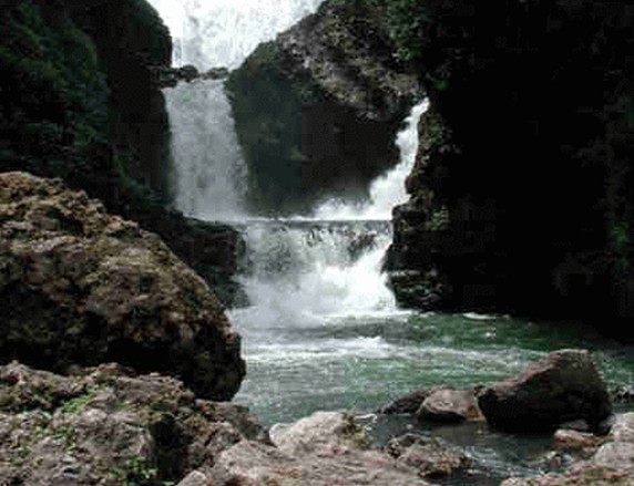 天下第一大神龕--香火巖神龕,位于景區(qū)中部半邊山下,寬約500多米,高約100多米的懸崖峭壁之上,龕內(nèi)隱約可見一座佛,高大雄偉,似人工實(shí)乃天成,迎面石峰矗立,若石人遙拜,渾然一體,妙不可言。香火巖大瀑布,位于神龕與石人之間,河水至此變窄、變陡,驟然間突現(xiàn)八級(jí)瀑布??偮洳罴s250米,寬40米,樹林掩映、水霧縈繞、彩虹隱現(xiàn)、蔚為壯觀。沿觀瀑亭拾階而上,山路蜿蜒,奇樹夾道,藤繞枝連,綠葉蔽日,行約800米,忽見一景--滴水潭,滴水似鳴琴,深潭似臥龍,予人曲徑通幽之感。順小道前行,曲折似若無路,再行驟然現(xiàn)一大洞,謂之曰:"吐云洞",洞口云霧縈繞,洞內(nèi)怪石嶙峋,鐘乳倒掛,暗河密布,水流湍急,聲若雷鳴。洞內(nèi)絕壁棧道,游人至此無不感嘆大自然之鬼斧神工及建道者的艱辛。二洞天生橋,雄奇無比,人稱"黔中第一天生橋",橋?qū)捈s300米,高約50米,跨度約40米,橋頂中央巧開一"天窗",陽光飛瀉、滴水飄雪,觸手可及,人間仙境莫過于此。香火巖之紅楓林、紅霞巖、水簾靈芝巖、金雞湖等等之勝景在此不一一敷述,游人至此自可感悟一番......