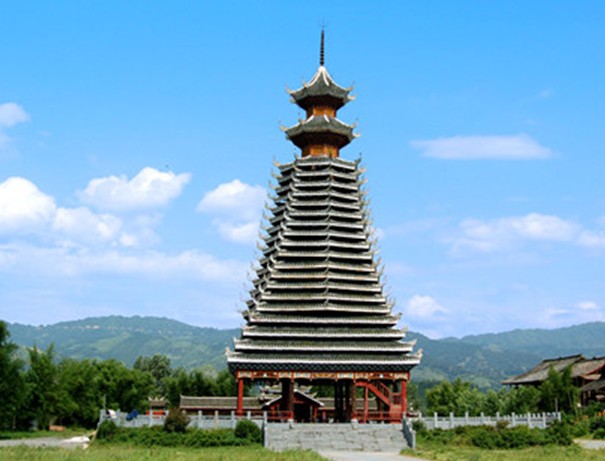 紀(jì)堂鼓樓位于貴州省黎平縣肇興鄉(xiāng)紀(jì)堂寨上,共3座。十分雄偉壯觀,1982年,紀(jì)堂鼓樓被列為省級重點文物保護(hù)單位。紀(jì)堂分上寨下寨,各有一座鼓樓,由十二根大杉樹原木支撐而起。塔身分八角,而頂層卻變化為四角攢尖頂花重檐。鼓樓周圍的地面和民居的走道上都以卵石鑲嵌成象征喜慶吉祥的圖案。紀(jì)堂鼓樓建筑年代久遠(yuǎn),曾多次修葺。