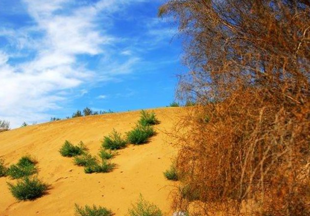 沙漠內(nèi)部絕大部分為固定和半固定沙丘,其面積占整個沙漠面積的97%。形成中國面積最大的固定、半固定沙漠。固定沙丘上植被覆蓋度40—50%,半固定沙丘達15—25%,為亞洲中部灌木漠的主要部分,是優(yōu)良的冬季牧場。版權(quán)所有山東聊城聊之旅國際旅行社有限公司,轉(zhuǎn)載必究!再加上埋藏的古沖積平原和古河湖平原,沉積有巨厚的第四紀松散沉積,賦存著淡承壓水,使古爾班通古特雖有沙漠之名,但也是生機盎然,生存的植物多達300種以上。