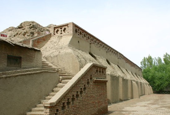 吉木薩爾千佛洞坐落在天山北麓距吉木薩爾縣城西南5km的黃土崗上,向北有小路與烏奇公路相通,交通便利.千佛洞建筑呈東西向的長方形,東面有山門。正殿坐西朝東,土木結(jié)構(gòu),南北兩則建有配房,磚木建筑。正殿為一有斗拱的硬山頂建筑,分前、中、后堂三部分。前堂塑有丈許高的釋加佛像一尊,中堂面闊三間,繪有佛說法圖,18羅漢等塑像;后堂塑有臥佛一尊;三部分緊密相連,構(gòu)成一個(gè)整體。寺院的西南搭有戲臺(tái),供廟會(huì)組織的戲班所用原千佛洞始建于唐代,現(xiàn)千佛洞始建于清代,四建四毀。我們現(xiàn)在見到的是1993年由吉木薩爾佛教理事會(huì)募捐修建的,面目已同歷史上的千佛洞不同。壁畫、雕像均為現(xiàn)代工匠重新雕塑繪制。