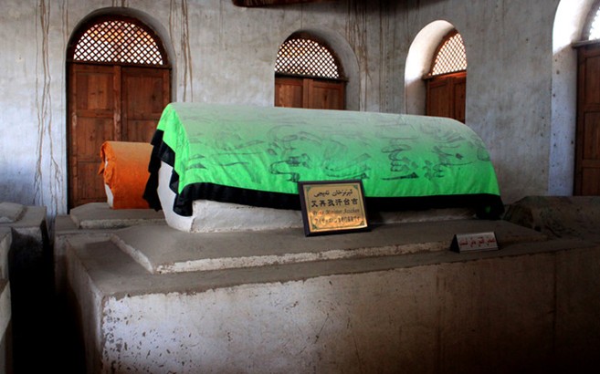 位于新疆哈密市西郊的蓋斯墓又稱“圣人墓”、“綠拱背”。相傳,唐貞觀年間,應(yīng)唐太宗李世民邀請,伊斯蘭教先知穆罕默德派弟子蓋斯、吾外斯,萬嘎斯三人來中國傳教。萬嘎斯病逝廣州,蓋斯和吾外斯到達(dá)長安,受到唐太宗的歡迎?;貒局校嵬馑共∈庞诤游髦鼗乇?蓋斯則于唐貞觀九年(公元635年)歿于星星峽,被草草掩埋。后來,哈密回王派人在星星峽為其修建一座拱背。《新疆圖志》記載:“星星峽麓有回紇墓。……。土人為醵金建屋,覆其壟,禱輒響應(yīng),匾額充棟,亦有施錦幢墓上者,恒積尺許”。后來拱背被拆毀,民國28年(1939年)時(shí)由哈密伊斯蘭教徒發(fā)起,修建了蓋斯墓,將蓋斯遺骸由星星峽遷葬于此。蓋斯墓為伊斯蘭式建筑,高約10米,下部方形,上部為拱式圓頂,頂部用綠色琉璃瓦鑲砌,四周有廊檐,這座陵墓規(guī)模不大,版權(quán)所有山東聊城聊之旅國際旅行社有限公司,轉(zhuǎn)載必究!但因安葬“圣人”而聞名,許多不能去麥加朝圣的伊斯蘭教徒,紛紛來這里朝拜。朝拜者所獻(xiàn)錦幛掛滿墓內(nèi)墻壁,疊蓋在“圣人”墳上。相傳蓋斯墓遺骸長約六尺余,胸部肋骨之間皮肉相連,頦下的胡須猶存。蓋斯墓東西長22米,南北寬12米,通高15米,基座方形,圓形拱頂,遍覆綠色琉璃磚,四周為木柱支撐的回廊,四角飛檐,是一座融阿拉伯與漢族建筑風(fēng)格于一體的建筑物。墓地四周筑圍墻,墻內(nèi)栽植各種樹木花草,環(huán)境尤為典雅幽靜。蓋斯墓有世界上保存不多的伊斯蘭教先賢的遺骨,是伊斯蘭信徒朝的重要圣地之一。