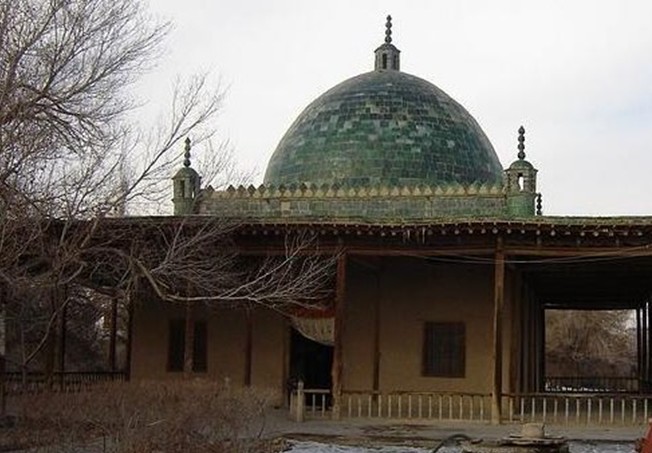 位于新疆哈密市西郊的蓋斯墓又稱“圣人墓”、“綠拱背”。相傳,唐貞觀年間,應(yīng)唐太宗李世民邀請,伊斯蘭教先知穆罕默德派弟子蓋斯、吾外斯,萬嘎斯三人來中國傳教。萬嘎斯病逝廣州,蓋斯和吾外斯到達(dá)長安,受到唐太宗的歡迎?;貒局校嵬馑共∈庞诤游髦鼗乇?蓋斯則于唐貞觀九年(公元635年)歿于星星峽,被草草掩埋。后來,哈密回王派人在星星峽為其修建一座拱背。