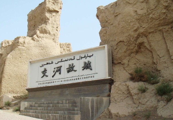 交河故城--是世界上最大最古老、保存最完好的生土建筑城市,也是我國(guó)保存兩千多年最完整的都市遺跡,唐西域最高軍政機(jī)構(gòu)安西都護(hù)府最早就設(shè)在交河故城。1961年被列為國(guó)家重點(diǎn)文物保護(hù)單位。是公元前2世紀(jì)至5世紀(jì)由車(chē)師人開(kāi)創(chuàng)和建造的,在南北朝和唐朝達(dá)到鼎盛,9至14世紀(jì)由于連年戰(zhàn)火,交河城逐漸衰落。元末察合臺(tái)時(shí)期,吐魯番一帶連年戰(zhàn)火。交河城毀損嚴(yán)重,終于被棄。