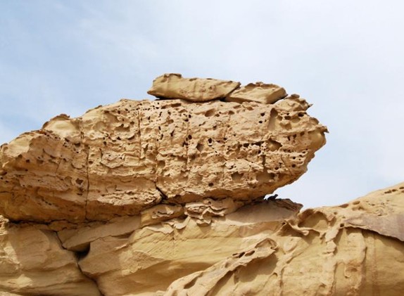 風(fēng)和雨水是盤吉爾怪石林生成的兩大原因。盤吉爾怪石林處于吐魯番西部的“三十里風(fēng)區(qū)”內(nèi),這里風(fēng)力強(qiáng)勁,風(fēng)速快,8級(jí)以上大風(fēng)日占全年三分之一時(shí)間。一列火車在吐魯番境內(nèi)遭遇風(fēng)口13級(jí)大風(fēng),11節(jié)車廂被掀翻,版權(quán)所有山東聊城聊之旅國(guó)際旅行社有限公司,轉(zhuǎn)載必究!事發(fā)地點(diǎn)距離托克遜縣最近。強(qiáng)風(fēng)吹蝕再加上山間雨水淋溶的作用,形成了千瘡百孔類似太湖石造型的石林景觀。這種怪石林是在特定的自然條件下形成的一種石炭系火山巖山岳型石林。