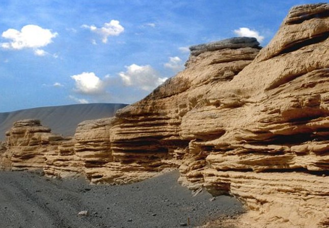 托克遜的雅丹地貌景區(qū),由上千個各具特色的土丘組成,呈西北——東南方向分布,綿延5公里?;騽游?,或建筑,或行云流水,形神兼?zhèn)?。和烏爾禾雅丹相比較,沒有那種高不可攀的感覺,各種造型多了些小巧玲瓏和天真稚氣。托克遜雅丹附近還有怪石山、紅河谷,一年四季都適合旅游、觀光。尤其冬春季節(jié),這里是烏魯木齊及周邊市縣驢友津津樂道的目的地。