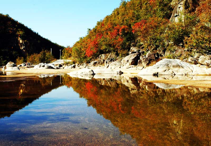 五龍?zhí)段挥趯毺炻下吹穆由缴希诩s五公里的深山峽谷中因瀑布跌落,自然形成了五個潭,依勢為黃龍?zhí)丁⒊帻執(zhí)?、白龍?zhí)?、紫龍?zhí)?、黑龍?zhí)?。版權所有聊城聊之旅國際旅行社有限公司,轉載必究!據傳潭中因蟒蛇成龍而故名。黑龍?zhí)蹲顬閴延^,一掛80余米的瀑布從山崖的絕壁處跌落形成。水花飛濺,聲響震耳,活現一幅珍珠倒卷簾的壯觀畫卷。潭旁的絕壁石態(tài)千姿,西端有一峰高聳秀麗,其周圍的山景極有氣勢。順黑龍?zhí)断滦胁贿h即為紫龍?zhí)?,處于山谷夾縫之中,西側行走艱難,行人需攀物方可前行。潭小、谷深、水清,一目了然,令人心曠神怡。白龍?zhí)吨車鼮殡U峻,素有“一線天”之稱,陰森森地令人驚顫,觀之隨即就會油生“深潭若谷”之感。赤龍?zhí)渡絼萏咕?,看上去讓人神秘莫測。最下面的黃龍?zhí)短洞蠖睿Q為“無底深潭”。五龍?zhí)兜奶毒把琶榔婷?,周圍的山景更是點綴得如詩似畫。嶺峰羅列,峰峰疊翠,各種各樣的樹木郁郁蔥蔥,各種各樣的怪石絕壁爛漫多姿。五龍?zhí)度缥孱w明珠鑲嵌在群峰峽谷之間,深山藏幽,幽而自然,版權所有聊城聊之旅國際旅行社有限公司,轉載必究!真是風光無限。五龍?zhí)杜浜蠈毺炻_發(fā)旅游勝景,潛力巨大,前景可觀。
