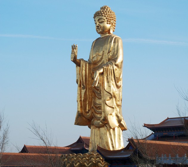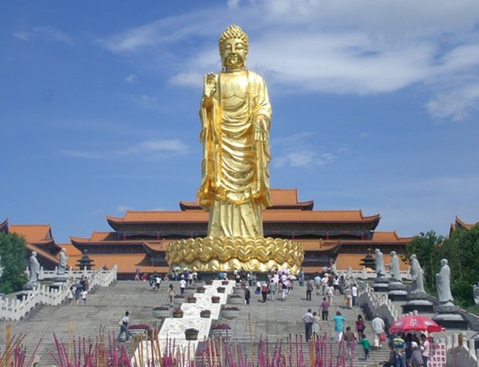 景區(qū)內(nèi)的紅光山大佛寺伴隨著佛教寺院的梵音佛塔,若絲香火,晨鐘暮鼓,和佛祖來一次心與心的交流。感受佛教的博大精深。尤其是景區(qū)內(nèi)高40.8米的西域大佛銅立貼金雕像,讓人充分領略佛教文化在西域的發(fā)揚與光大。大佛高高聳立,直入云端,氣勢之大顯得人更加渺小。大佛神態(tài)慈祥,身披金裝,一種普度眾生的超然神態(tài),已讓人心生敬畏。懷著虔誠的心態(tài),在大佛下許愿燒香,或許是為了追求一種內(nèi)心的信仰與平靜.遠望大佛,壯觀雄偉,金光燦燦,氣勢磅薄,一派肅穆,揚善棄惡的佛教理念盈盈而生...看過介紹才知道釋迦牟尼佛祖銅像高達38.8米,重量達百余噸.由烏魯木齊市大光明銅藝廠主持設計,佛身全靠工匠們一點一點打造而成,僅佛手高有5.7米,佛的耳朵高2.6米,是世界第二大銅造立佛。