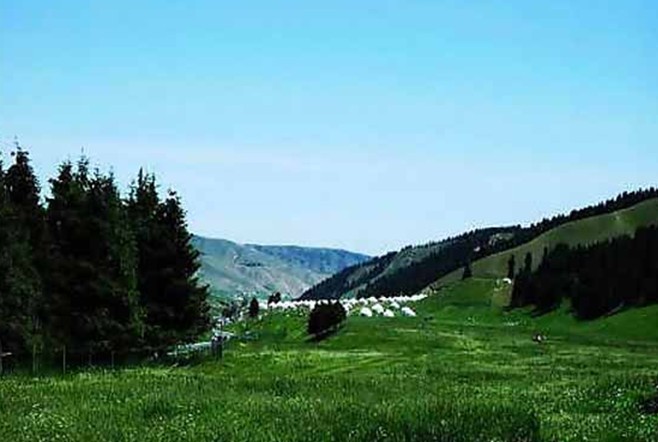 西白楊溝風(fēng)景區(qū)位于烏魯木齊市南郊天格爾峰北麓,距市區(qū)58公里,面積612.52公頃,是南山景區(qū)中久負(fù)盛名的旅游避暑勝地,因溝壑白楊密布而得名。景區(qū)內(nèi)松林連峰續(xù)嶺、奇峰突兀崢嶸、淙淙溪流穿行在嶙岣怪石之間、座座別墅掩映在翠林叢中,點(diǎn)點(diǎn)氈房散落在開(kāi)闊草坪之上,野趣逼人。特別是溝中高達(dá)70米絕壁飛瀑,如白練懸空、擊石濺玉、虹霓若現(xiàn),令人噴嘖稱奇。來(lái)到白楊溝,你既可以騎馬,合著悠揚(yáng)的鈴聲,細(xì)心感受白楊溝清幽奇險(xiǎn)的自然風(fēng)光,還可以在陽(yáng)光的攙扶下,半躺在軟綿綿的草坪上,看天上蒼鷹盤(pán)旋和遠(yuǎn)處具有濃郁哈薩克民俗風(fēng)情的賽馬、叼羊、姑娘追等表演,盡情享受遠(yuǎn)離都市的那份愜意和從容。從五、六十年代起,劉少奇、朱德、鄧小平等老一輩無(wú)產(chǎn)階級(jí)革命家、江澤民等黨的第三代領(lǐng)導(dǎo)人先后來(lái)到景區(qū)考察,看望各族農(nóng)牧民,給景區(qū)增添了更加特殊、更為豐富的人文內(nèi)涵。目前,景區(qū)內(nèi)度假別墅、賓館、氈房,蒙古包等接待設(shè)施齊全,服務(wù)上乘,每年接待數(shù)十萬(wàn)游客來(lái)此度假避暑觀光旅游。