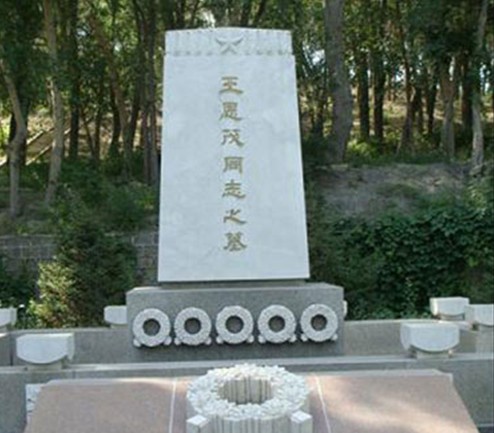 重建后的烈士墓碑,采用北京房山漢白玉,碑身高2.2米,底寬1.4米,頂寬1.28米,厚0.7米。正面是烈士墓碑題字,背面是用漢、維、哈、蒙四種文字鐫刻的烈士簡歷碑座、墓身份別采用泰山花崗巖和天山花崗巖磨制而成。碑座上精雕細刻著象征高潔的雪蓮花。晶瑩潔白的墓碑,莊重肅穆。