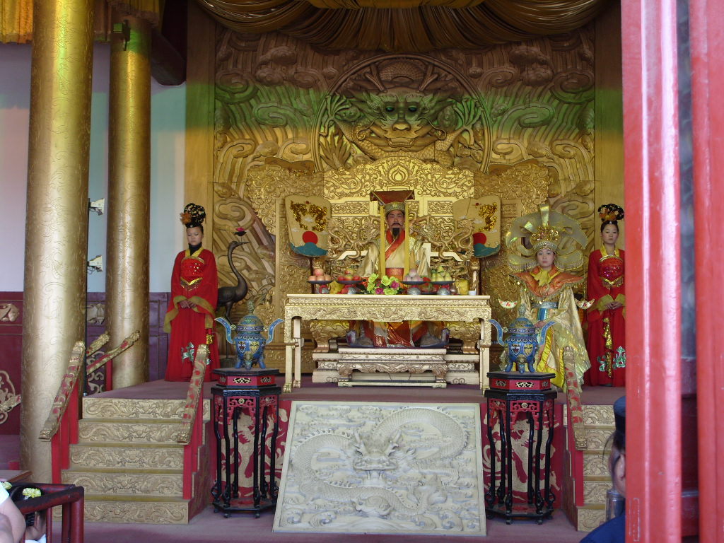 龍亭是古城開封的一個著名游覽點,也是開封文物古跡的一個代表。其實,這不是亭,而是建筑在一座高達13米的巨大青磚臺基之上的殿堂。龍亭坐北朝南,高踞在臺基之上。從地面到大殿有36丈高,代表36天罡;72級臺階,代表72地煞。臺階中間是雕有云龍圖案的石階。登上平臺,四周有石欄圍繞。大殿是木結(jié)構(gòu),重檐歇山式建筑,很壯觀。游人登上平臺,入殿觀看陳列的文物后,多在石欄前眺望開封古城景色。龍亭前有一條筆直的大道,道旁有兩個東西對峙的湖,東為潘湖,西為楊湖。版權(quán)所有聊城聊之旅國際旅行社有限公司,轉(zhuǎn)載必究!龍亭的傳說很多,是旅游圣地。