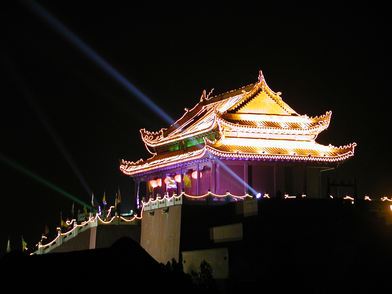龍亭是古城開封的一個著名游覽點,也是開封文物古跡的一個代表。其實,這不是亭,而是建筑在一座高達13米的巨大青磚臺基之上的殿堂。龍亭坐北朝南,高踞在臺基之上。從地面到大殿有36丈高,代表36天罡;72級臺階,代表72地煞。臺階中間是雕有云龍圖案的石階。登上平臺,四周有石欄圍繞。大殿是木結(jié)構(gòu),重檐歇山式建筑,很壯觀。
