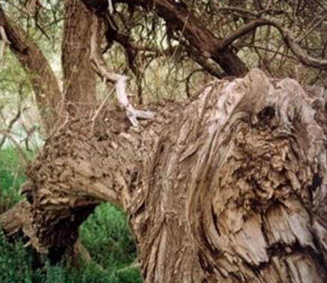 阿克蘇向北,過(guò)溫宿縣城后,再向西北行60公里,穿越一大片戈壁灘,一個(gè)崗巒起伏的小綠洲便展現(xiàn)面前。這個(gè)小綠洲,不是處在地勢(shì)低洼處,而是位于坡度平緩的崗阜上,海拔為1700米左右,面積僅0.4平方公里,但卻是郁郁蔥蔥,濃蔭覆蓋,流水潺潺,蜂飛蝶舞,堪稱人間仙景。當(dāng)?shù)胤Q它為“怪樹(shù)園”。被稱之為“圣水泉”的一汪清泉在綠洲頂部,涓涓細(xì)流,滋潤(rùn)著這塊綠洲。伊斯蘭教徒視其為“圣水”,據(jù)說(shuō)有祛病強(qiáng)身的功效。許多穆斯林愿在身后葬于此,綠洲側(cè)畔庫(kù)米爾什阿塔木麻扎,每屆春夏之交,遠(yuǎn)近的伊斯蘭教徒來(lái)此朝拜,高峰日人數(shù)逾萬(wàn),自然奇觀與宗教朝圣融合為一體。