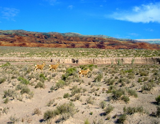阿克蘇拜城縣鐵熱克鎮(zhèn)境內(nèi),距縣城38公里,交通便利。地理坐標(biāo)81°32′27″E,41°58′00″N,海拔1670米。石腳印位于卡普斯浪河左岸一級地上,在它旁邊是一深切小溝谷,源頭為一苦泉,沿第三紀(jì)砂巖裂縫向外滴流。據(jù)說此苦泉水可治眼病,每年都有許多本地群眾前來洗眼治病,石腳印在一橢圓形的深褐色火巖礫石上,為一深陷的左腳印,印紋深約3厘米,長約28厘米,寬約9.5厘米。