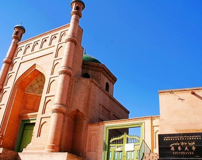 庫車大寺是信奉伊斯蘭教的人民群眾做禮拜的宗教場所。大寺坐落在新疆庫車縣城黑墩巴扎最高處。距庫車新城4公里,是新疆境內(nèi)僅次于喀什艾提尕爾清真寺的第二大寺。