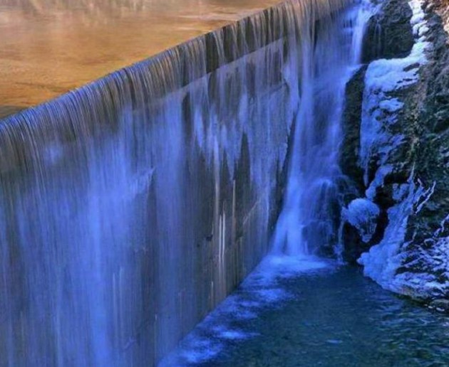 在峽谷深處緊靠峰基一高約8米,寬4米山洞的圓形頂壁上,終年有泉水滴落。冬季滴水成冰,凝成一個(gè)上窄下寬、重約千斤、晶瑩剔透的巨大冰柱。每年三四月間冰體漸溶,宛如體態(tài)多姿的少女,妙不可言,故此取名玉女泉。