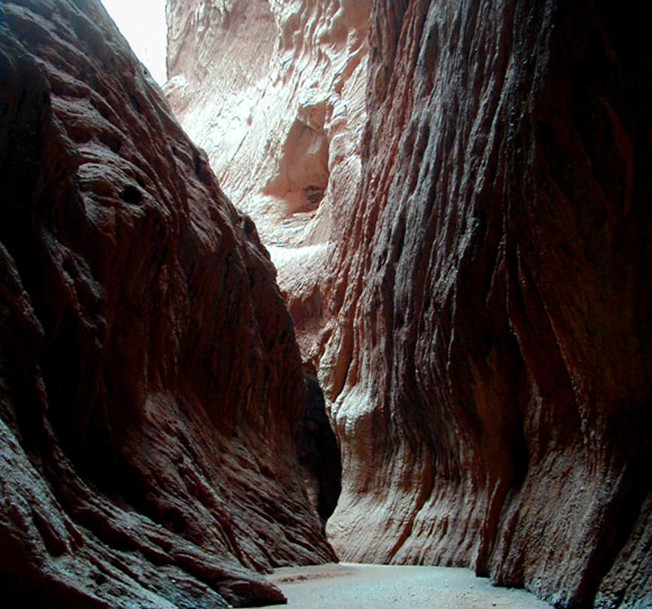 天山大峽谷又稱克孜利亞大峽谷,位于新疆阿克蘇地區(qū)庫車縣北部,(古稱龜茲)城北64千米,北緯42°8′,東經(jīng)83°5′。呈東向西縱深長約5.5公里。為紅褐色巖石經(jīng)風(fēng)雕雨刻而成,峽谷曲徑通幽,別有洞天,山體千姿百態(tài),峰巒直插云天,溝中有溝,谷中有谷。南天門、幽靈谷、月牙峽、虎牙橋、魔天洞、雄師淚等景觀造型生動(dòng),形態(tài)逼真。距谷口1.4公里處的山崖上有一處唐代石窟,版權(quán)所有山東聊城聊之旅國際旅行社有限公司,轉(zhuǎn)載必究!窟內(nèi)南、北、西壁上有殘存壁畫和漢文字。距峽谷700米處另有一峽谷,與神秘峽谷相伴。天山神秘大峽谷,集人間峽谷之妙,兼天山奇景之長,蘊(yùn)萬古之靈氣,融神、奇、險(xiǎn)、雄、古、幽為一體。景異物奇,令人神往。1999年發(fā)現(xiàn)后,游人日益俱增;2002年元月榮升為國家AA級(jí)旅游名勝風(fēng)景區(qū)。為古絲綢之路黃金旅游線上新增了一顆璀璨的明珠。神秘的“天山大峽谷”距離庫車縣城約70公里,谷口十分開闊,深谷之中卻是峰回路轉(zhuǎn),時(shí)而寬闊,時(shí)而狹窄,有些地方僅容一人側(cè)身通過。谷底比較平坦,兩側(cè)是高聳的石壁,腳下是細(xì)沙,有些路段還一層淺淺的積水。谷內(nèi)奇峰異石千姿百態(tài),數(shù)不勝數(shù),神犬守谷、旋天古堡、顯靈洞、玉女泉、臥駝峰等景觀個(gè)個(gè)形態(tài)逼真。神秘而久遠(yuǎn)的的阿艾石窟,距離谷口不足2公里,高懸于絕壁之上,最初僅可攀著30多米高的懸梯而上,現(xiàn)已修建石階棧道。據(jù)專家鑒定,石窟建于盛唐初期。石窟很小,深不足5米,約一人高,洞頂呈拱形??邇?nèi)三面皆有殘存的壁畫,而壁畫上竟然罕有地出現(xiàn)了漢字,與古西域地區(qū)其他數(shù)百座石窟相迥異,充分顯示漢文化的痕跡。