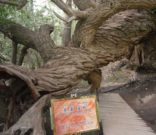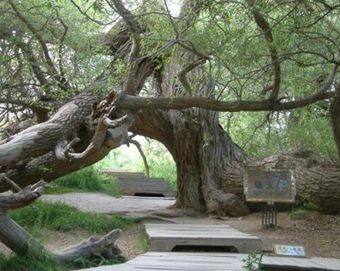 神木園其實(shí)是一處古墓地,它的原始名字叫庫(kù)爾米什阿塔木麻扎。在溫宿縣地圖上西北邊的一條公路兜住的那三個(gè)小圓點(diǎn),就是新疆聞名遐邇的天山神木園的標(biāo)注。溫宿縣志•卷二十七•第五章第四節(jié)古墓葬中對(duì)此記載如下:庫(kù)爾米什阿塔木麻扎位于薩瓦甫牧場(chǎng)場(chǎng)部東北10.7千米。地理坐標(biāo):東經(jīng)79°42′26″,北緯41°35′32″。面積680畝,海拔1700米,尚存古墓數(shù)十座。相傳公元11世紀(jì),沙特阿拉伯的一名叫蘇力塔庫(kù)爾米什賽依德的伊斯蘭教阿訇,帶領(lǐng)兩千名教徒,經(jīng)印度到中國(guó)傳教,受到當(dāng)?shù)厝说牡种撇l(fā)生沖突。敗退至此地時(shí),大部分教徒戰(zhàn)死,蘇也陣亡,便埋葬在這里,形成了一個(gè)占地頗大的麻扎。其中呈圓形的最大的一個(gè)是蘇的墳?zāi)?,雖年久失修,確仍保持著穆斯林古老墓式。麻扎四周為戈壁荒丘,內(nèi)卻以草綠、樹(shù)怪、泉多而聞名遐邇。該麻扎高出地面50米,滿山遍野長(zhǎng)滿了綠草,山地像披上了一張綠色的地氈。草地里有10余處泉頭,泉水淙淙,從草地穿行而過(guò),樹(shù)形千姿百態(tài),有的似神龍游動(dòng),屈折盤(pán)旋,貼地而伸:有的樹(shù)高達(dá)96。23米;有的樹(shù)枝與根部相連,分不出那是枝,哪是樹(shù)根。很多樹(shù)都是百年以上的老樹(shù),版權(quán)所有山東聊城聊之旅國(guó)際旅行社有限公司,轉(zhuǎn)載必究!有的老樹(shù)倒地后又從根部發(fā)出新枝,長(zhǎng)成參天大樹(shù)。庫(kù)爾米什阿塔木麻扎,既是穆斯林朝拜圣地,又是風(fēng)景勝地,每年到這里朝拜、旅游者達(dá)萬(wàn)余人次。為保護(hù)這一勝地,1986年縣財(cái)政拔款4萬(wàn)元,群眾捐款十多萬(wàn)元,對(duì)麻扎清真寺進(jìn)行了修繕,并建筑了磚圍墻和架設(shè)了鐵刺圍欄。1989年11月,阿克蘇地區(qū)文物管理所普查隊(duì)來(lái)此地考查,被定為縣級(jí)文物保護(hù)單位,縣有關(guān)單位派有專人管理。麻扎東南20米處有一古墓群,計(jì)十余座,尚未發(fā)掘考察。這是1993年7月出版的溫宿縣志記載。從志書(shū)考證,神木園曾是一片處女地。公元11世紀(jì),蘇力塔庫(kù)爾米什及其2000名教徒傳教殉職葬于此地后,當(dāng)?shù)厝艘詭?kù)爾米什阿塔木麻扎為此地命名。如今那個(gè)古老的命名也只能從志書(shū)中去搜尋考證了。