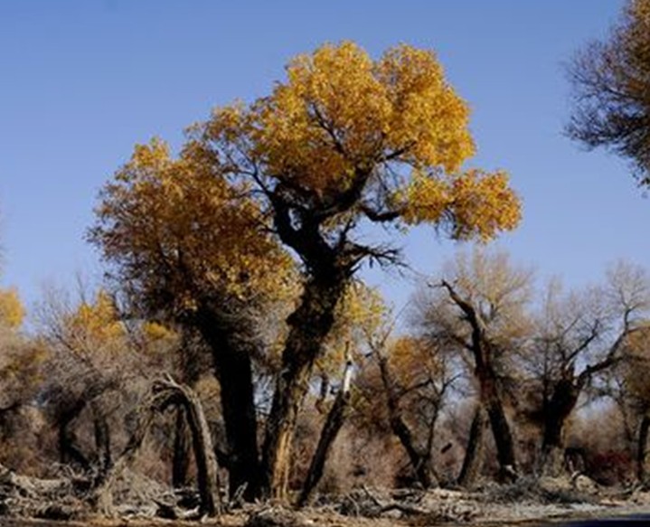 胡楊是第三紀(jì)殘余的古老樹(shù)種。胡楊生長(zhǎng)期漫長(zhǎng),由于風(fēng)沙和干旱的影響,很多胡楊樹(shù)造型奇特、詭異,有“活三千年不死,死三千年不倒,倒三千年不朽”的說(shuō)法。全世界的胡楊絕大部分生長(zhǎng)在中國(guó),而中國(guó)百分之九十以上的胡楊林又生長(zhǎng)在新疆塔里木河流域。 胡楊,維吾爾語(yǔ)叫“托克拉克”,意為“最美麗的樹(shù)”。由于它頑強(qiáng)的生命力,以及驚人的抗干旱、御風(fēng)沙、耐鹽堿的能力,人們又叫它“沙漠英雄樹(shù)”。胡楊,還有紅柳、梭梭、沙棗等沙漠植物,它們的一生是一部啟示錄——有關(guān)生命與死亡、大漠首位與絕處逢生的啟示錄。