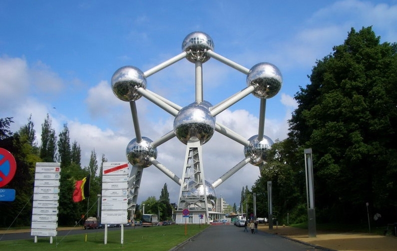 原子球 為比利時(shí)1958年在此地的展覽中心舉辦的布魯塞爾博覽會(huì)所設(shè)計(jì)的標(biāo)志建筑。設(shè)計(jì)者希望通過(guò)這一巨大的建筑表達(dá)微小的原子概念,并顯示人類和平利用原子的前景。構(gòu)思來(lái)源于原子結(jié)構(gòu)圖,九個(gè)巨大的金屬圓球由粗大的鋼管連接構(gòu)成一正方體圖案。版權(quán)所有聊城聊之旅國(guó)際旅行社有限公司,轉(zhuǎn)載必究!正方體的大小相當(dāng)于放大了1650億倍的鐵的正方體晶體結(jié)果。八個(gè)圓球位于正方體的八個(gè)角,另一個(gè)圓球位于正方體的中心。圓球直徑18米,連接各個(gè)球間的鋼管每根長(zhǎng)26米,直徑3米??傊?200噸,高102米??沙穗娞莸竭_(dá)離地100米高的頂端圓球觀賞布魯塞爾的風(fēng)景。其他圓球中為各種主題的科技展覽廳。分別陳列有太陽(yáng)能、和平利用原子能、航天技術(shù)、天文等方面的展品,以及有關(guān)比利時(shí)氣象事業(yè)的發(fā)展史、衛(wèi)星氣象、氣象雷達(dá)、氣象通訊方面的圖表。