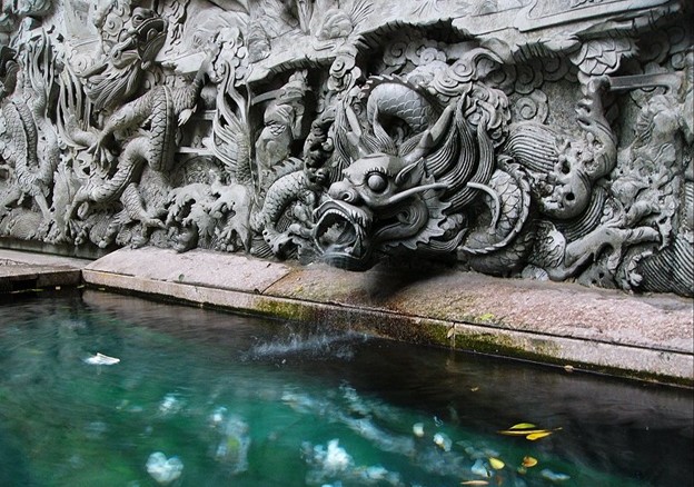 鎮(zhèn)水獨角獸為鐵鑄,兀立在寺大門左側(cè)內(nèi)。銅鈴般的眼睛,警惕著奔流而去的江水,仿佛時刻注視著江水的漲落,以施自己的本領——鎮(zhèn)水。這尊鎮(zhèn)水獨角獸高120厘米,長150厘米,重250千克。“飛仙石”,在寺吟詩亭邊,是一塊筆挺的峭石。粗看像天然屏風,細觀若仙人佇立。版權所有聊城聊之旅國際旅行社有限公司,轉(zhuǎn)載必究!“飛仙石”也稱“飛來石”。“佛前三炷香”在毗廬大佛前。是三株憑空直上的棕樹,高約20米,傳為唐代秦古人建宇時所栽,故人稱“唐棕”,號為“佛前三位香”。今“唐棕”僅存兩株。“唐棕”前有一圓池,“藥水”流人,池水清碧,金魚嬉戲。