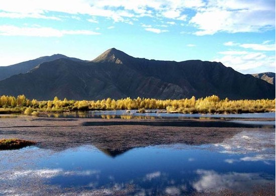 然烏湖的湖邊是一大片碧草如茵的草甸,和著碧藍(lán)的湖水、白雪皚皚的雪峰,景色如詩(shī)如畫(huà)。狹長(zhǎng)的阿木錯(cuò)湖向西蜿蜒十余千米逐漸收縮成一道河谷,隨季節(jié)的不同,河水也呈現(xiàn)出或碧藍(lán)或青綠等數(shù)種顏色。河道中許多巖石和小島點(diǎn)綴其間,湖面上春季樹(shù)影婆娑秋冬薄霧彌漫,四季美景都會(huì)使人如進(jìn)夢(mèng)幻之境。