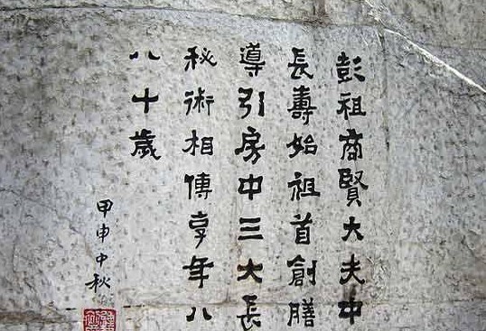 北魏酈道元《水經(jīng)注》“獲水”條云:(彭城)城之東北角,起眉樓於其上,號(hào)曰彭祖樓?!兜乩碇尽吩?,彭城縣,古彭祖國(guó)也?!妒辣尽吩唬懡K之子,其三曰籛,是為彭祖。彭祖城是也。下曰彭祖冢。彭祖長(zhǎng)年八百,綿壽永世,於此有冢,蓋亦元極之化矣!