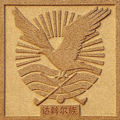 民族園東邊有一個半徑45米的圓形休閑廣場,廣場中央矗立著高大的民族圖騰圓柱,柱身四周塑有達斡爾族曾崇拜的原始圖騰物和人們生產(chǎn)、生活的歷史場景,畫面精美、歷史感強、民族特色鮮明。柱頂有一只雄鷹(海東青)昂首振翅,搏擊長空,意寓勤勞、勇猛、智慧的達斡爾族及莫力達瓦人在向著美好的未來奮力騰飛。環(huán)繞圖騰柱的是反映達斡爾歷史上生產(chǎn)生活中使用的大輪車、弓箭、搖籃、神鼓等器物和人們飼養(yǎng)的羊、狗等。廣場上兩面達斡爾族歷史文化墻,版權(quán)所有山東聊城聊之旅國際旅行社有限公司,轉(zhuǎn)載必究!藝術(shù)地再現(xiàn)了達斡爾族的歷史神話傳說、生產(chǎn)、生活、文體活動等場面。