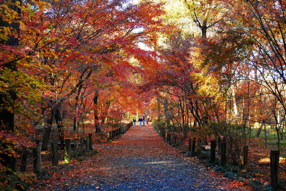 武藏丘陵森林公園位于埼玉縣的比企北丘陵。1974年7月22日開園,是日本最早的國營公園。附近地域的民眾都直接稱它為森林公園。公園面積達300萬平方米,園內(nèi)有大片的天然林,星羅棋布,點綴著41個湖沼。園內(nèi)有一條全長17公里的自行車專用道,游人可以租用自行車在林間悠游。