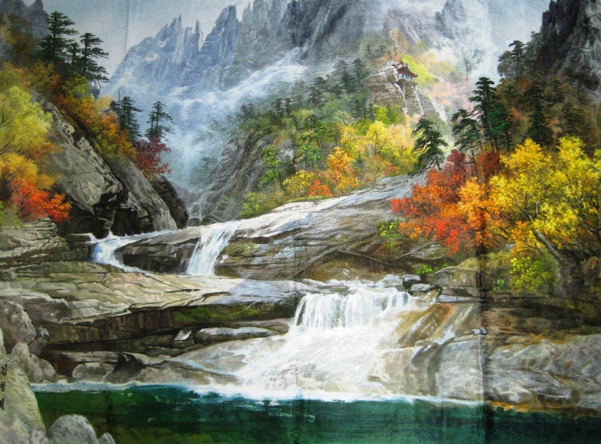 然而有趣的是,金剛山隨著四季的變換,在四季里有四個(gè)不同的名稱。春季,在明媚的陽(yáng)光的照射下,巍然屹立的山峰,閃閃發(fā)光,遠(yuǎn)遠(yuǎn)望去就像是一塊閃耀著的金剛石,因此叫作金剛山;夏季,林木蔥郁,松林云海,又稱蓬萊山;秋季,層林盡染,楓葉勝火,漫山紅遍,又稱楓岳山;冬季,草木凋零,石骨嶙峋,又名皆骨山。