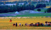 輝騰錫勒草原距呼和浩特東北150公里。蒙語(yǔ)意為寒冷的高原。這里海拔1800多米,在東約18公里的地方,有九十九個(gè)天然湖泊,鑲嵌在綠草如蔭的草原上。這里是避暑的好地方,游人在這里可以體驗(yàn)“早穿皮襖,午穿紗,晚上圍著篝火吃西瓜”。