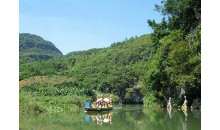 陽春玉溪三洞全長3公里,均可坐船瀏覽。第二洞長330米,水深2-5米,水面寬20-30米,河水清澈如玉,水中多生長鯉魚。洞中景物豐富,尤以“三變石”為趣,詩人張永枚曰:“遠(yuǎn)似漁翁釣清流, 近如獅子滾繡球,忽變犀牛望明月,一石三景迷輕舟”。第一洞頂?shù)摹盎使凇笔?,酷似皇冠,游人在船上隨即可拍攝一幅頭戴皇冠的照片。
