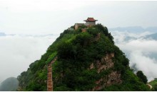 從山西成子溝沿山路盤環(huán)而上,過熊洞拾級登峰,自西向東挺起兩座突兀的奇峰,西峰孤立陡險,俗稱西頂;東峰雄偉平坦,號稱東頂。兩頂相距約200多米,中間有石路相連,遠遠遙望猶如姐妹兩人對峙爭艷,人稱姐妹峰,是觀日出和看云海的理想之地。東頂西頂早在唐代就興建有廟宇,以后經(jīng)過歷代擴建,整修,到清末已有大小三十余座廟宇殿閣。