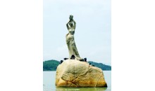 珠海漁女是珠海市的象征,位于珠海風(fēng)景秀麗的香爐灣畔,矗立著一尊巨型石刻雕像——珠海漁女,她領(lǐng)戴項(xiàng)珠,身掮漁網(wǎng),褲腳輕挽,雙手高高擎舉一顆晶瑩璀璨的珍珠,帶著喜悅而又含羞的神情,向世界昭示著光明,向人類奉獻(xiàn)珍寶。