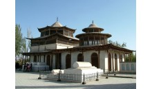 又稱哈密王墓,該陵墓位于哈密市西郊回城沙棗井。陵墓建筑群占地面積約1.3公頃,四周有圍墻。建筑群共分三部分:第一部分膸大拱拜(即回王墳),埋葬著七世回王伯錫爾及其大小福晉,八世回王默哈莫德及其王妃、王族40人。該墓為新疆著名的伊斯蘭建筑,下方上圓,通高17.8米,建筑面積1500平方米,雄偉壯觀素雅莊重。第二部分是南邊的五座亭式木結構小拱拜,東西排列,為歷代回王陵墓。