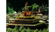 拉卜楞寺西南角,由三世貢唐倉?貢曲乎丹貝仲美大師建成于1805年,原名現(xiàn)見解脫大金塔,因塔內(nèi)供有從尼泊爾迎請來的無量光佛(阿彌陀佛)像而享譽海內(nèi)外,寶塔造型別致,工藝精巧,在建筑藝術(shù)與宗教意義上達到了完美神圣之境界?,F(xiàn)存寶塔由六世貢唐倉?丹貝旺旭大師為丕振宗風,宏教利民,而于1991年2月8日在原寶塔遺址舉行凈地儀軌,主持籌建。