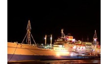 “海上城市”原名“巴西瑪魯”,是日本一艘國際遠(yuǎn)航客貨輪,已有四五十年的歷史,船長 156米、寬19.6米,共有七層,排水量達(dá)1.7萬噸。1954年下水,1951年載中日友好青年代表團(tuán)訪問中國,后改為旅游船,停泊在日本旅游勝地鳥羽市港灣,1997年由珠海華瑩集團(tuán)引進(jìn),次年落戶于湛江,與雄偉的南海艦隊軍港隔海相望。