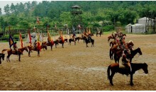 三國(guó)馬戰(zhàn)城的三國(guó)古戰(zhàn)表演是以三國(guó)時(shí)期為背景,再現(xiàn)《三國(guó)演義》中三英戰(zhàn)呂布的重要場(chǎng)面。 公元190年,18路諸侯為匡復(fù)漢室討伐董卓,在虎牢關(guān)前展開(kāi)了一場(chǎng)殊死拼殺。桃園結(jié)義的劉備、關(guān)羽、張飛三兄弟在迎戰(zhàn)董卓大將呂布時(shí),體現(xiàn)了蓋世英雄的豪邁氣概。