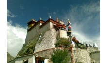 雍布拉康位于澤當(dāng)11公里的扎西次日山上。“雍布”意為“母鹿”,因扎西次山形似母鹿而得名,“拉康”意為“神殿”。雍布拉康是西藏歷史上第一座宮殿。據(jù)史書(shū)記載始建于公元前二世紀(jì)。松贊干布暑期由宮殿改作寺廟。文成公主初來(lái)西藏時(shí)每到夏季都會(huì)和松贊干布來(lái)這里居住。至五世達(dá)賴時(shí)又在原碉樓式建筑基礎(chǔ)上修了四角攢尖式金頂,并將其改為黃教寺院。