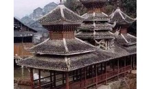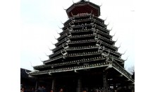 苗族鼓樓在臺江縣城東南方20公里的排羊鄉(xiāng)九擺村上寨中間,樓旁古木參天,蒼翠綠郁。 鼓樓為三重檐歇山頂屋面,木結(jié)構(gòu)建筑,覆蓋小青瓦,其 下層呈平面四方形,空間寬敞。樓高11米,占地52平方米,整 個建筑結(jié)構(gòu)以中間獨柱為中心,周圍16根外環(huán)檐柱為襯。利用 逐層內(nèi)收的粱、枋、瓜柱、檐柱支撐挑出屋檐。結(jié)構(gòu)無一釘一 鉚,攆橫穿斜插,銜接緊密牢固。前后留進出通道。